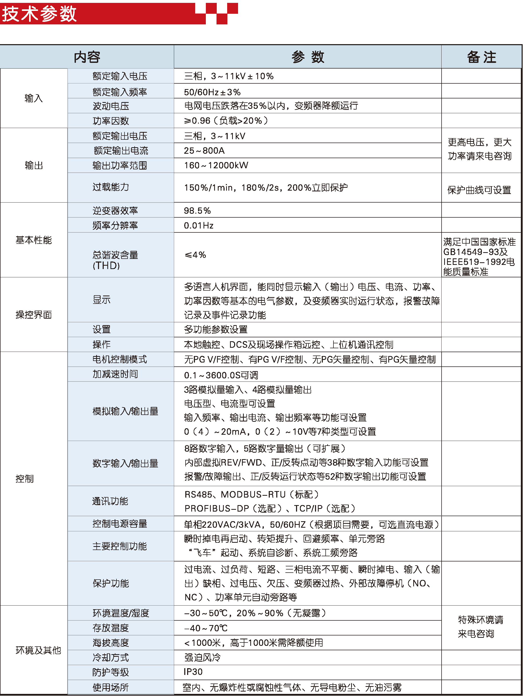 HVD3000系列第四代高壓變頻器的效率為96%以上,從而大大降低了變壓器及的溫升,延長(zhǎng)了電力電子器件的壽命,也進(jìn)一步提高了高壓變頻器的可靠性。